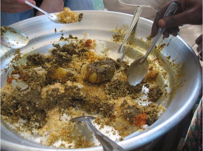 Children usually ate from one plate. Eating from one plate was an important part of socialization and family bonding. Only the Father of the House had the privilege of getting his food served separately. However, someone noticed that I didn’t keep up with half dozen hands scrambling in one plate and had exempted me. I ate slowly, unused to competing with others. Here the fast and furious ate the most. The slow and weak starved i guess. Bullies ate the most meat. But it was also customary for the youngest to get the last morsel and the pleasure of licking the plate clean after which they had to wash it. Washing plates was a great privilege.