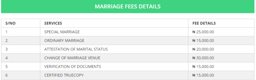 Upon receipt of the Registrar’s certificate, the parties can celebrate their marriage. The marriage can take place in a in a church duly licensed for the celebration of statutory marriages or the marriage registry usually within three months from the date the notice was placed with the registry. All States have marriage Registries at the State and Local Government secretariats.